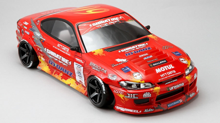 This is a 1/10 scale RC body sticker set that reproduces the vinyl stickers and sponsor logos of the "⚡SHIBATA⚡ DRIFT RACING TEAM" vehicles participating in the 2023 D1 Grand Prix.